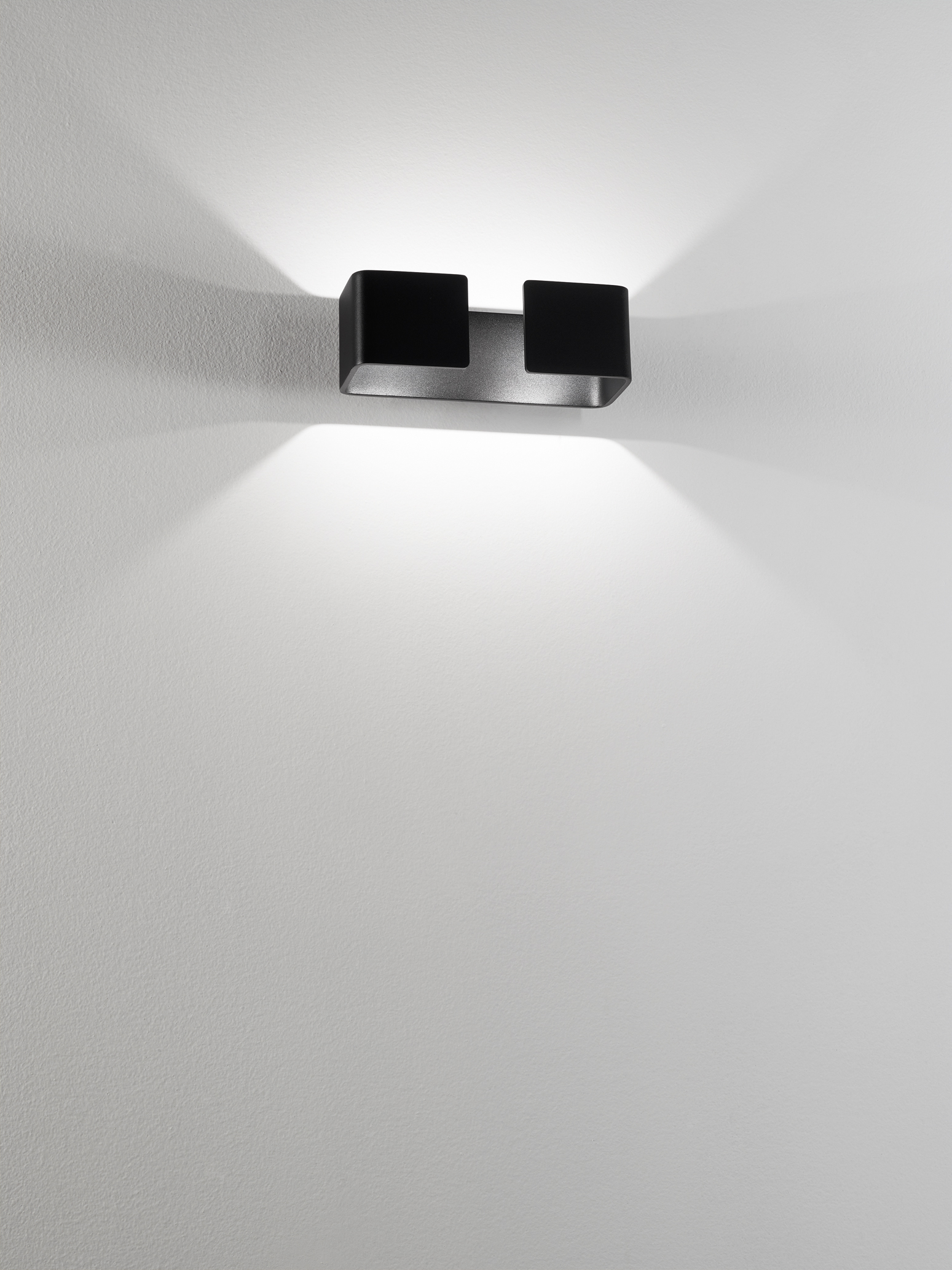 Lampada da parete in alluminio, montaggio in aderenza a parete tramite supporto in metallo.